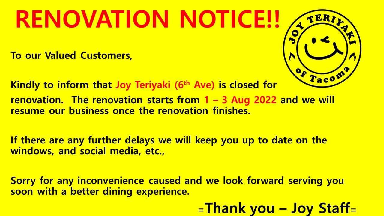 Renovation Closure Notification